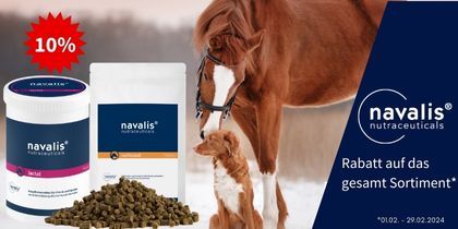 Die Marke navalis® nutraceuticals steht seit über 25 Jahren für hochwertige Ergänzungsfuttermittel. Pferde, Hunde und Katzen profitieren von einem breit gefächerten Produktportfolio, das die Vierbeiner bei zahlreichen Problemstellungen von A wie Arthrose bis Z wie Zuchterfolg optimal unterstützt. Die einzigartigen Rezepturen entstehen in enger Zusammenarbeit mit praktischen Tierärzten und basieren dabei stets auf aktuellen wissenschaftlichen Erkenntnissen. Das aufwändige Verfahren in firmeneigener Herstellung sowie die just-in-time-Produktion gewährt höchste Qualität und damit die beste Versorgung der Tiere: