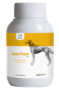 „Ab wann ist mein Hund ein Senior?“ Ältere Hunde sind häufig weniger agil, ihre Reaktionsschnelligkeit lässt nach, sie hören schlechter, kommen nicht mehr so schnell mit, reagieren langsamer. Ursachen dieser ersten Alterserscheinungen sind häufig nicht nur bei einem Organsystem zu finden sondern sind typische Alterserscheinungen vieler Organsysteme. Das Herz, die Gelenke, die Leber, das Gehirn, die Nieren spielen nicht mehr so mit. Man hat den Eindruck der Hund verliert seine Vitalität. Vicano Senior Power unterstützt gezielt die Organsysteme, die beim älteren Hund am häufigsten von Alterserscheinungen betroffen sind. Sprechen Sie Ihren Tierarzt an.